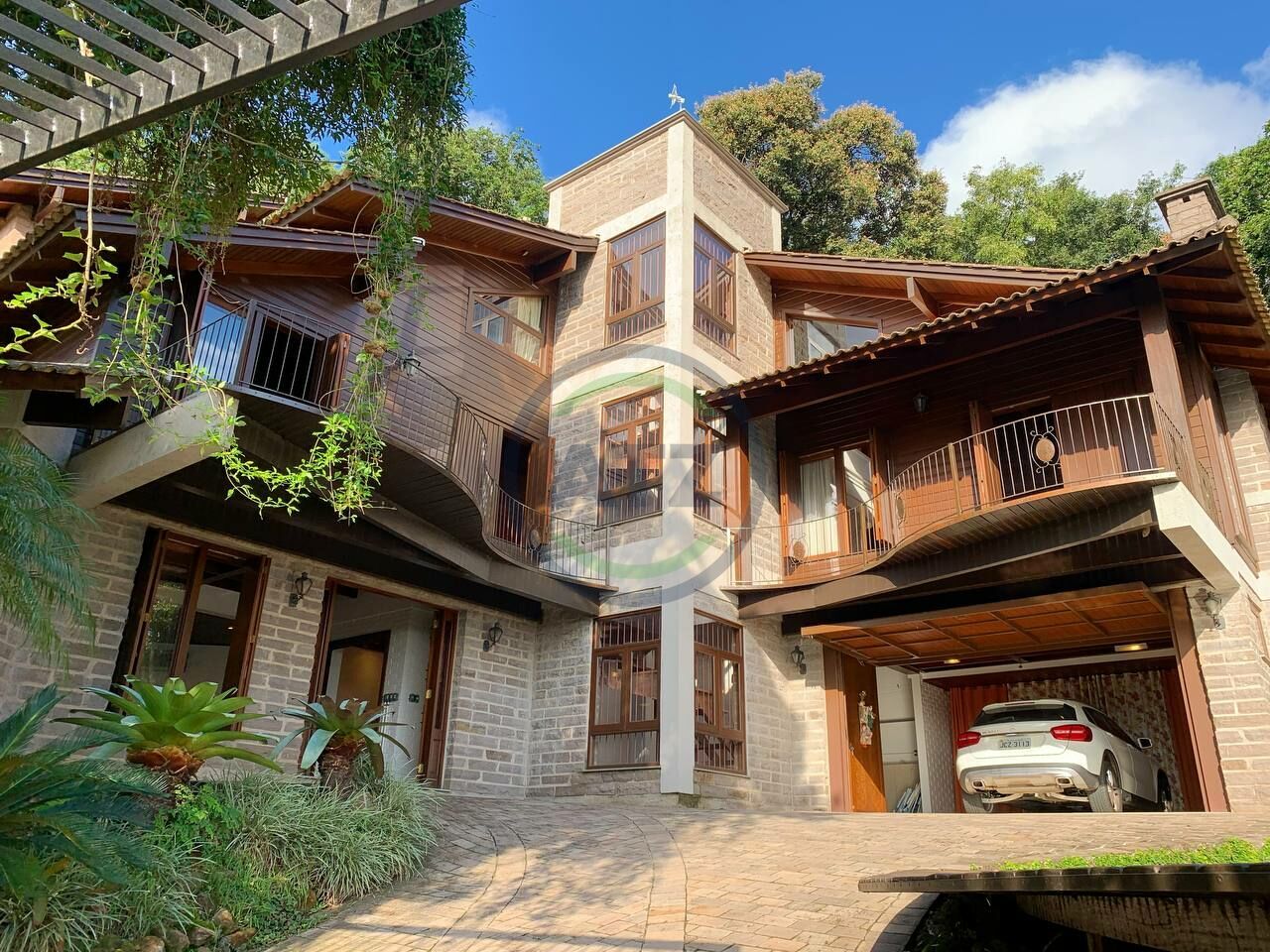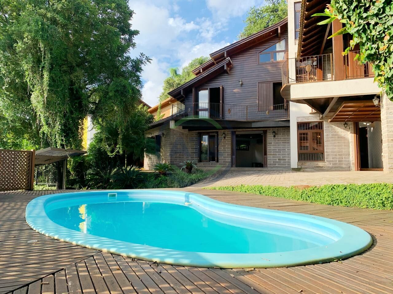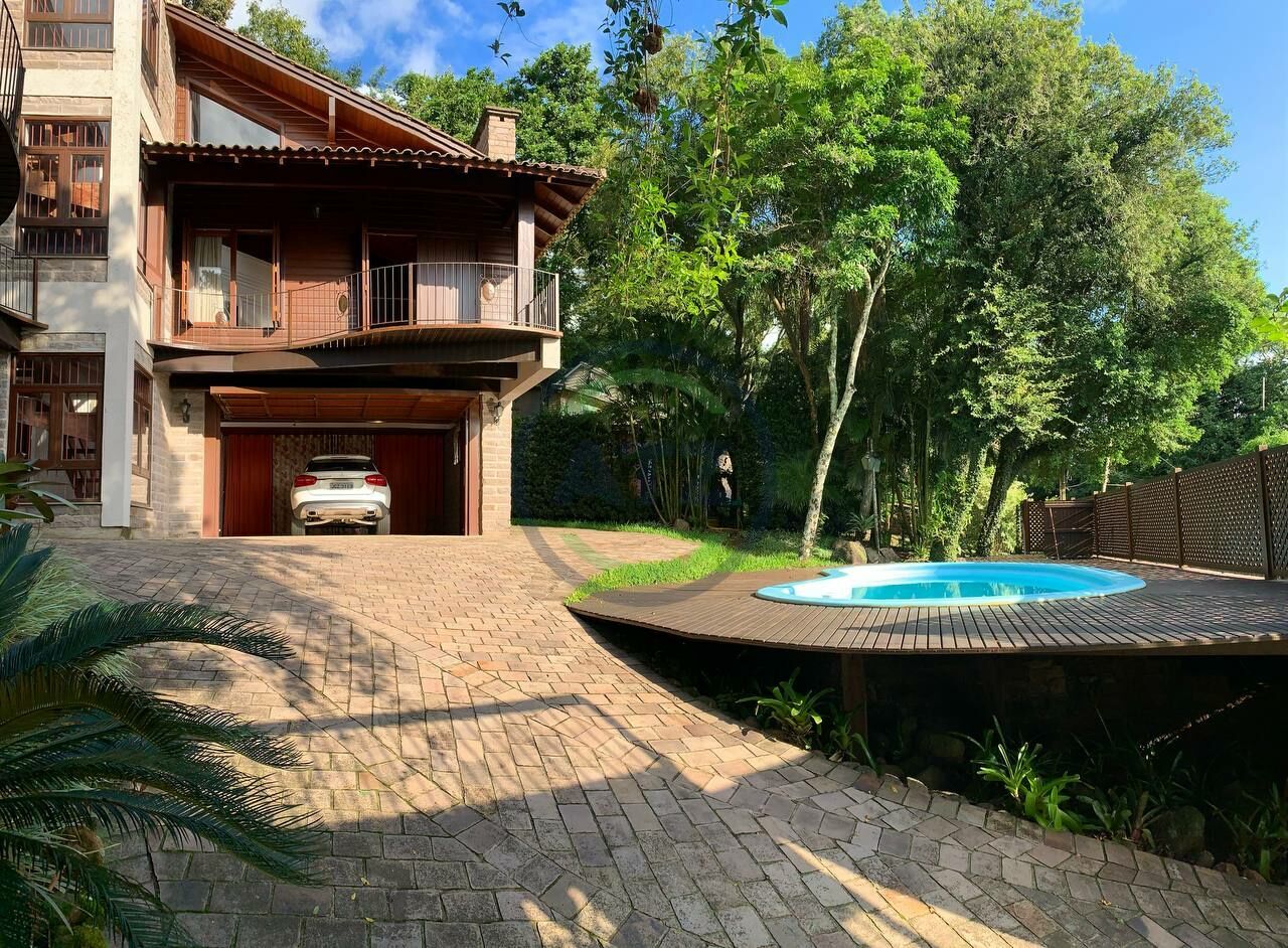 São 281 m² construídos num amplo terreno de 990 m², sendo 3 dormitórios (2 suítes, uma delas estilo "americana"), cozinha com churrasqueira e fogão campeiro integrada com sala de jantar, lavabo, banheiro social, sala de estar com lareira, escritório, área de serviço, vaga de garagem coberta para dois veículos. Além disso, um quintal com piscina rodeado por muito verde!