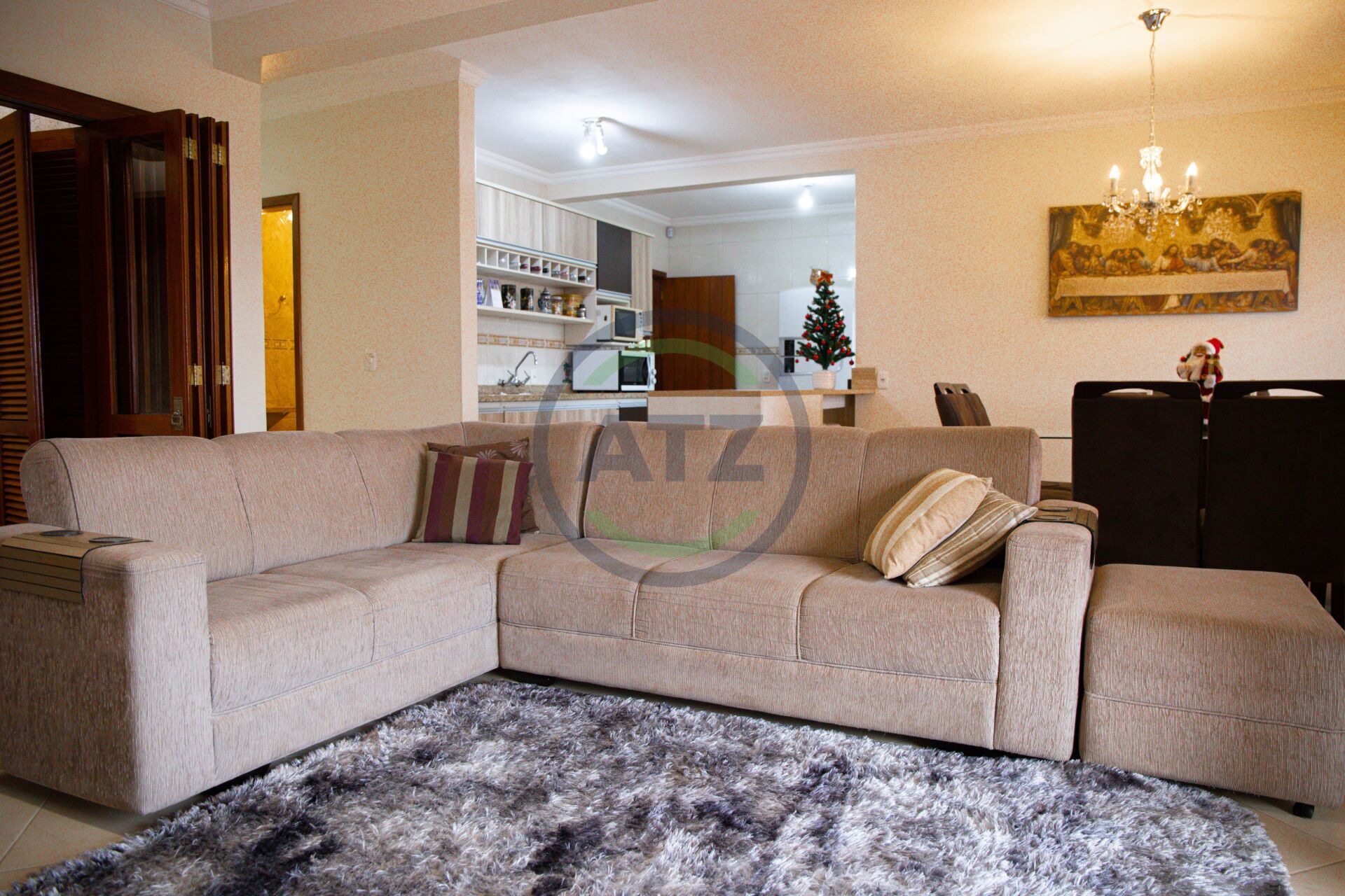 São três dormitórios, sendo uma suíte, sala, cozinha, churrasqueira, área de serviço, lavabo, 1 banheiro social.