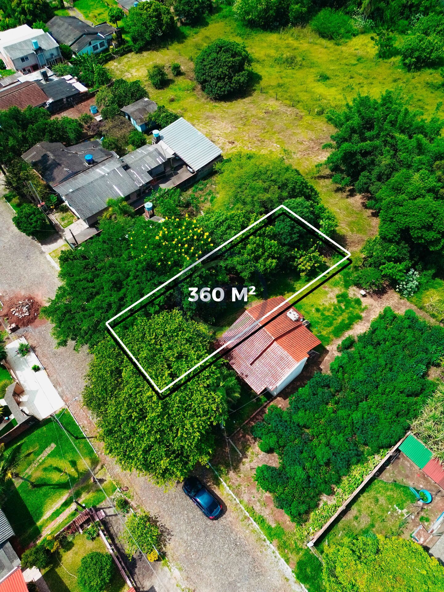 O terreno possui 360 m² de área total , sendo 12 metros de frente .
